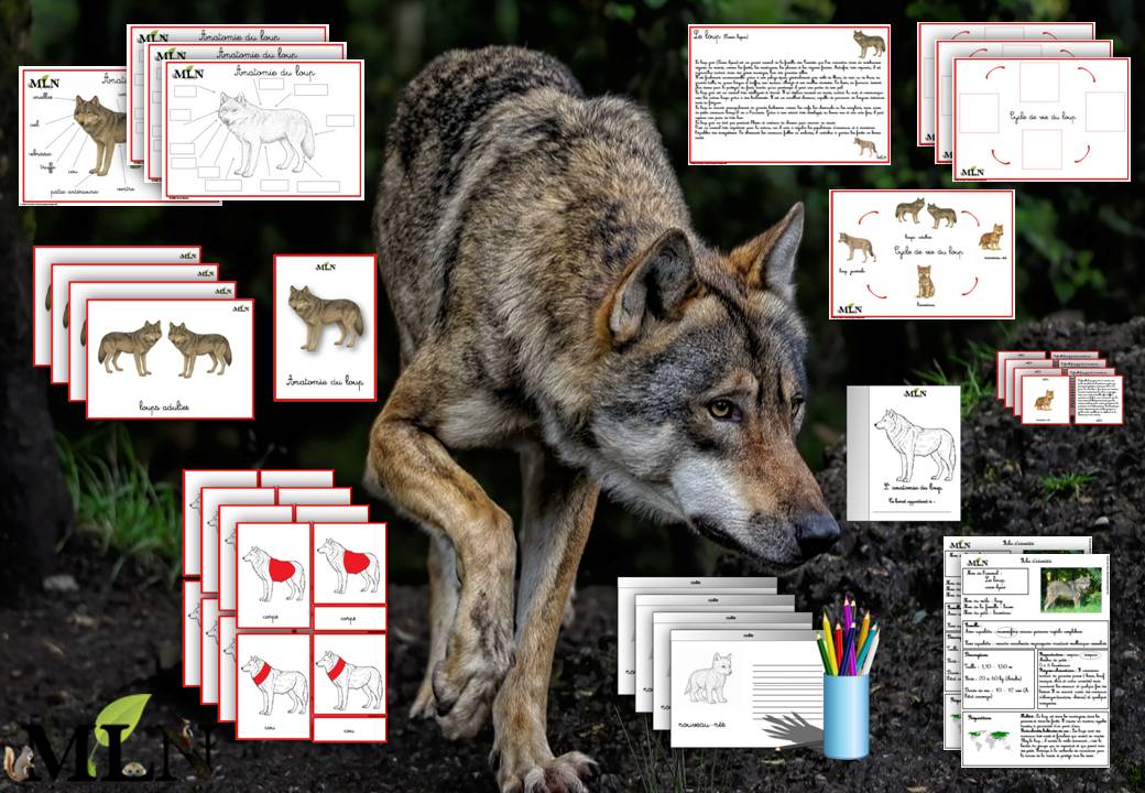 - Le cycle de vie du loup . Il est composé de fiches explicatives avec définitions, livret à compléter par l’enfant.
